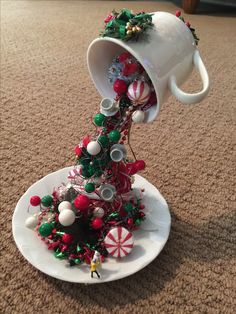 Une tasse en lévitation qui déverse de la décoration de Noël
