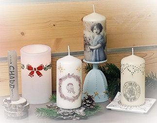 à découvrir la technique d'incrustation de serviettes en papier sur une bougie que nous décoreront ensuite avec les peintures sur bougie à base d'eau Gonis qui fondent avec la bougie sans dégager d'émanations toxiques .